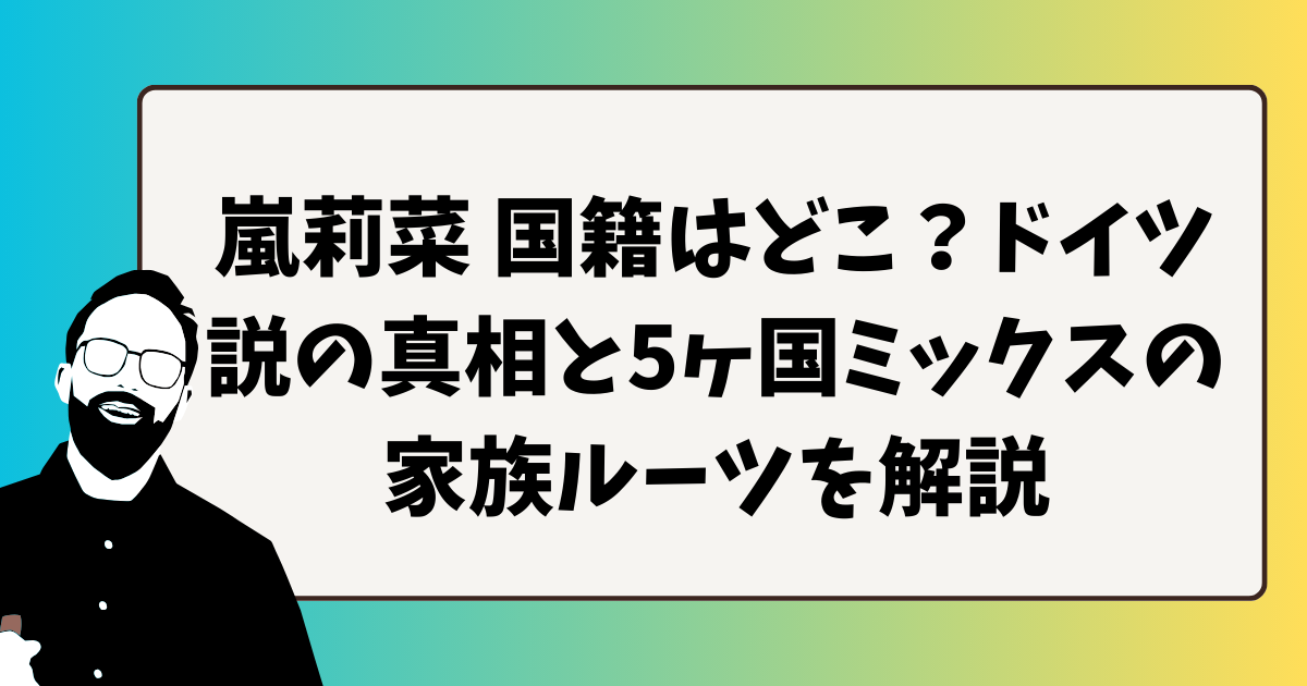 この記事では、嵐莉菜国籍の真相をはじめ、ドイツと言われる理由や五ヶ国ミックスの家族ルーツ、父親や母親の背景、さらに日本生まれ日本育ちの生い立ちまで詳しく解説していきます。嵐莉菜さんのプロフィールや家族背景を知りたい人にもわかりやすくまとめているので、ぜひ最後までチェックしてみてください。